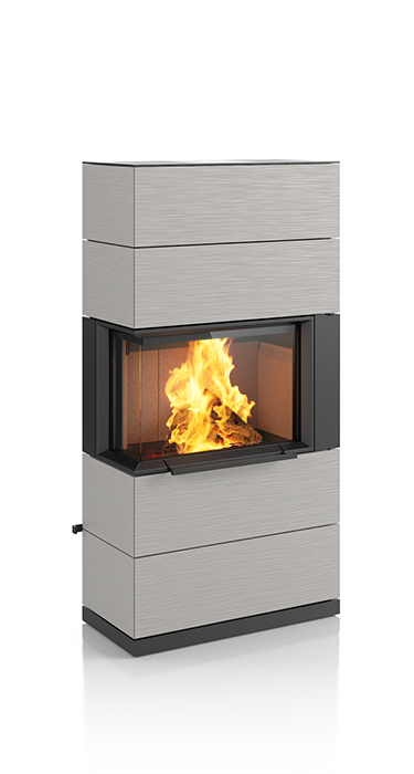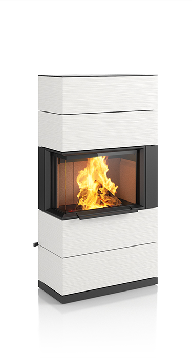 Viel Platz für ein wunderschönes Flammenspiel. Das macht den repräsentativen Kaminofen PADUA einzigartig. Sein durchdachtes Designkonzept umfasst eine Schiebetür, die sich komfortabel nach oben öffnet. Im passenden Regalsystem ist nicht nur genügend Platz für den Holzvorrat, es ist auch für seitliche Anschlüsse am Schornsteinzug geeignet. Die handgefertigte Keramik in edlen Texturen und ausgewählte Farben unterstreicht die exklusive Anmutung dieses besonderen Kaminofens. Auf Wunsch lässt sich PADUA mit einem Wärmespeicher ausstatten. Er ist in zwei Höhen erhältlich.