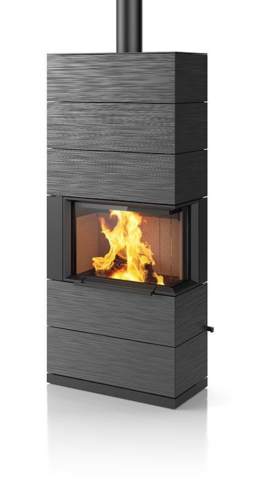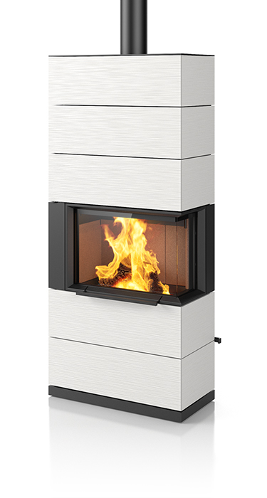 Viel Platz für ein wunderschönes Flammenspiel. Das macht den repräsentativen Kaminofen PADUA einzigartig. Sein durchdachtes Designkonzept umfasst eine Schiebetür, die sich komfortabel nach oben öffnet. Im passenden Regalsystem ist nicht nur genügend Platz für den Holzvorrat, es ist auch für seitliche Anschlüsse am Schornsteinzug geeignet. Die handgefertigte Keramik in edlen Texturen und ausgewählte Farben unterstreicht die exklusive Anmutung dieses besonderen Kaminofens. Auf Wunsch lässt sich PADUA mit einem Wärmespeicher ausstatten. Er ist in zwei Höhen erhältlich.